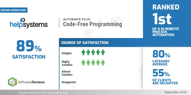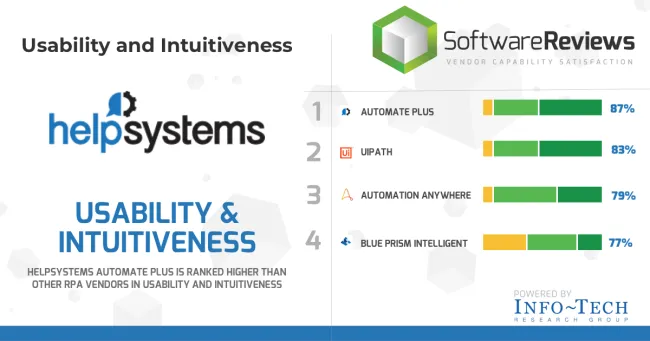 De acuerdo con datos publicados en el Reporte Info-Tech, que se basa en reseñas reales de clientes, Automate ocupa el primer puesto en nueve categorías de RPA, superando a otros reconocidos proveedores de software de automatización. Consulte esta guía para ver más resultados y descubrir por qué los clientes nos clasifican como una solución de RPA líder.