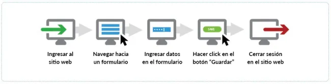 - Acciones de entrada de datos: incluyen pulsaciones de teclado, movimientos de mouse, clicks y acciones de copiado y pegado.